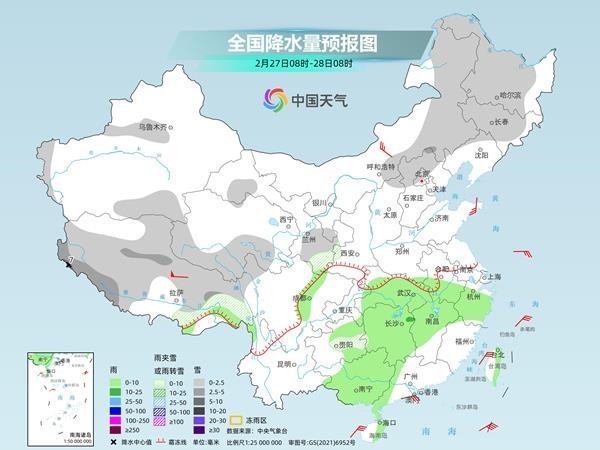 氣象部門(mén)提醒,南方大部陰雨頻繁的天氣將延續(xù)至3月初,其中,后天至3月1日,降水又將增強(qiáng),需關(guān)注路面濕滑、能見(jiàn)度下降等對(duì)春運(yùn)出行等方面的不利影響。華北、東北部分地區(qū)今明天將有降雪,公眾雪天外出請(qǐng)留意交通安全。