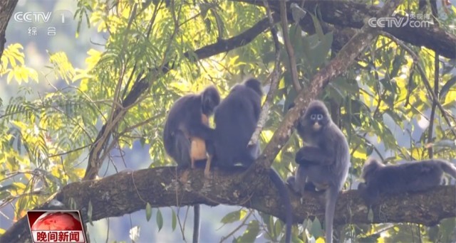 原來(lái)爭(zhēng)相帶娃是菲氏葉猴家族獨(dú)特的育兒方式。菲氏葉猴聚群而居,每個(gè)家庭成員都想和“小金猴”有更多親密接觸。此外,據(jù)護(hù)林員介紹,這些菲氏葉猴還有著“謙謙君子”的美譽(yù)。