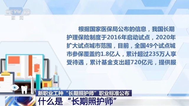日前,兩部門制定了長期照護師的國家職業(yè)標(biāo)準(zhǔn),并頒布施行。