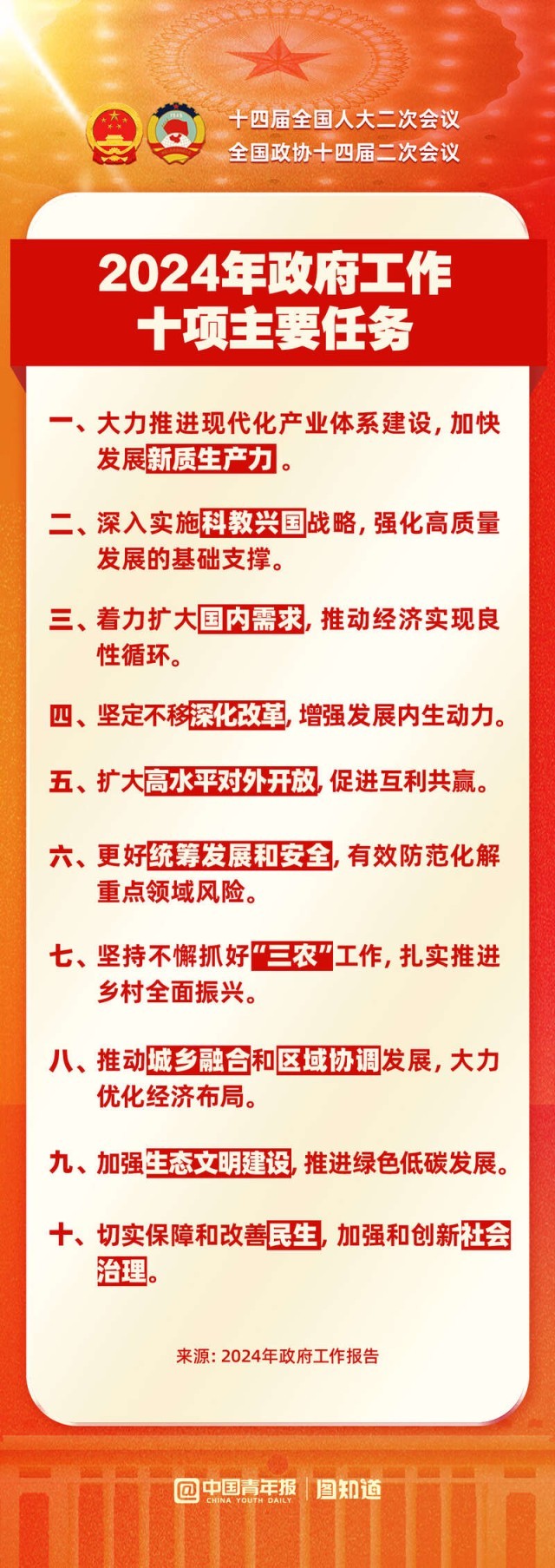 圖知道|政府工作報告:今年十大任務,發(fā)展新質(zhì)生產(chǎn)力排首位
