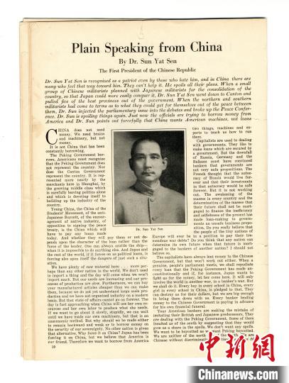 不少文物備受關(guān)注,比如:孫中山題贈(zèng)劉紀(jì)文的“知難行易”橫幅,孫中山贈(zèng)予下屬的銅制半身照,孫中山、宋慶齡伉儷北上留影照片,孫中山1920年4月3日發(fā)表于美國(guó)《獨(dú)立周報(bào)》的文章《中國(guó)人之直言》,美國(guó)發(fā)行的印有孫中山與林肯肖像的抗戰(zhàn)題材首日封。