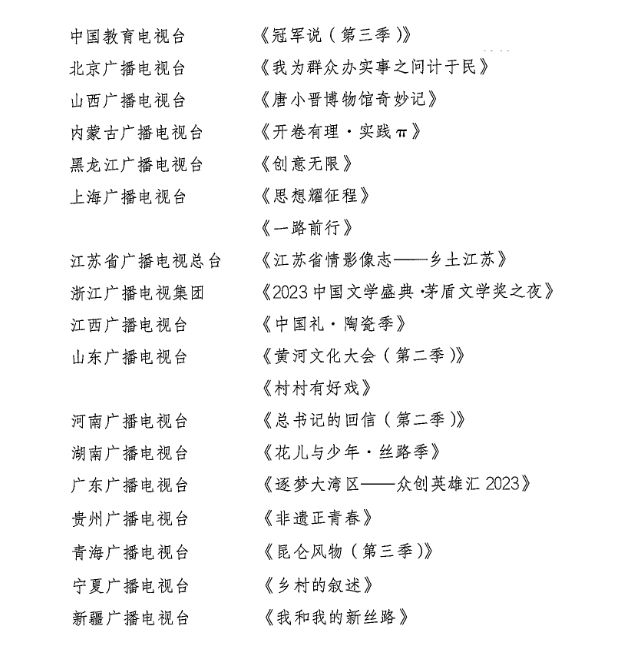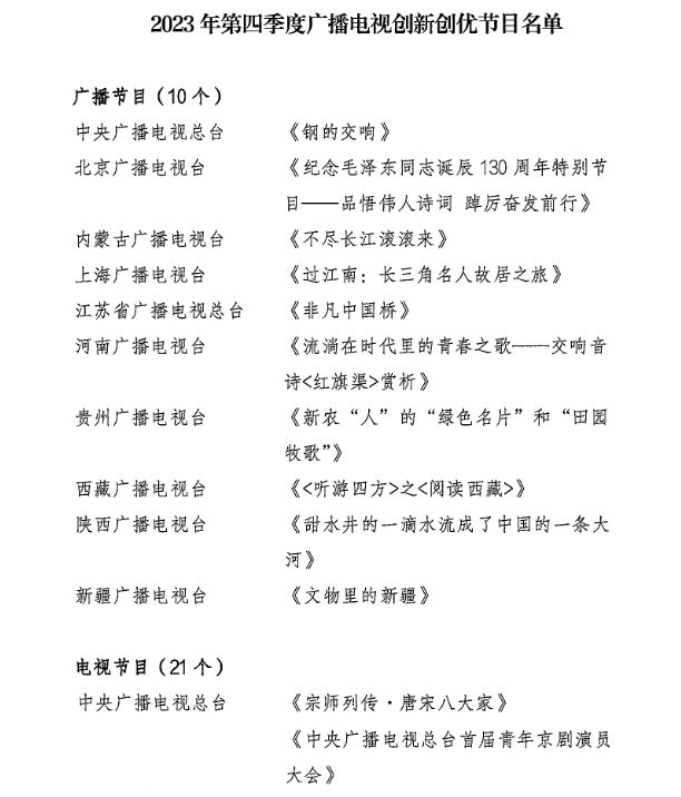 2023年第四季度廣播電視創(chuàng)新創(chuàng)優(yōu)節(jié)目名單公布