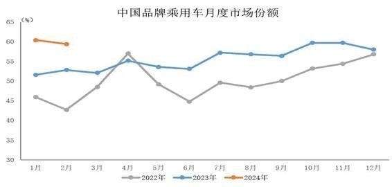 2024年1-2月,中國(guó)品牌乘用車(chē)銷(xiāo)量206.6萬(wàn)輛,同比增長(zhǎng)26.7%,市場(chǎng)份額為59.9%,上升7.6個(gè)百分點(diǎn)。