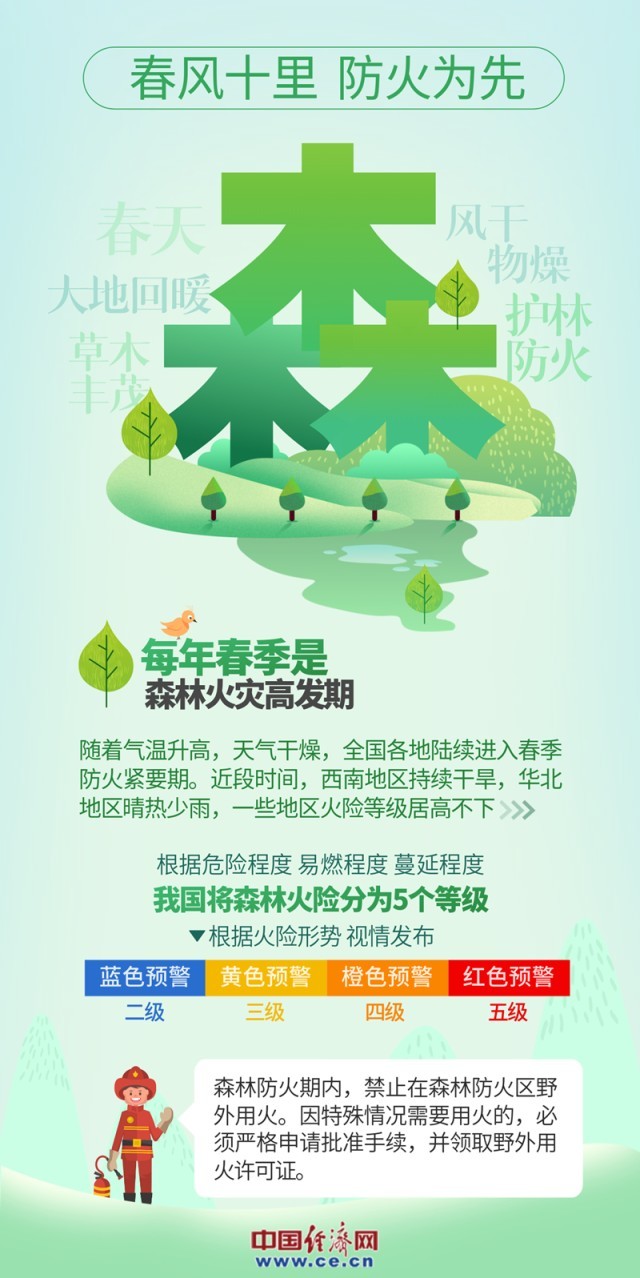 中國經(jīng)濟(jì)網(wǎng)北京4月3日訊(記者 楊秀峰 李冬陽 景遠(yuǎn))近期,春耕生產(chǎn)、踏青旅游、民俗祭祀等活動逐漸增多,一些地區(qū)接連發(fā)生森林火災(zāi);一些地區(qū)火險等級居高不下,全國各地陸續(xù)進(jìn)入春季防火緊要期,防滅火形勢嚴(yán)峻復(fù)雜。
