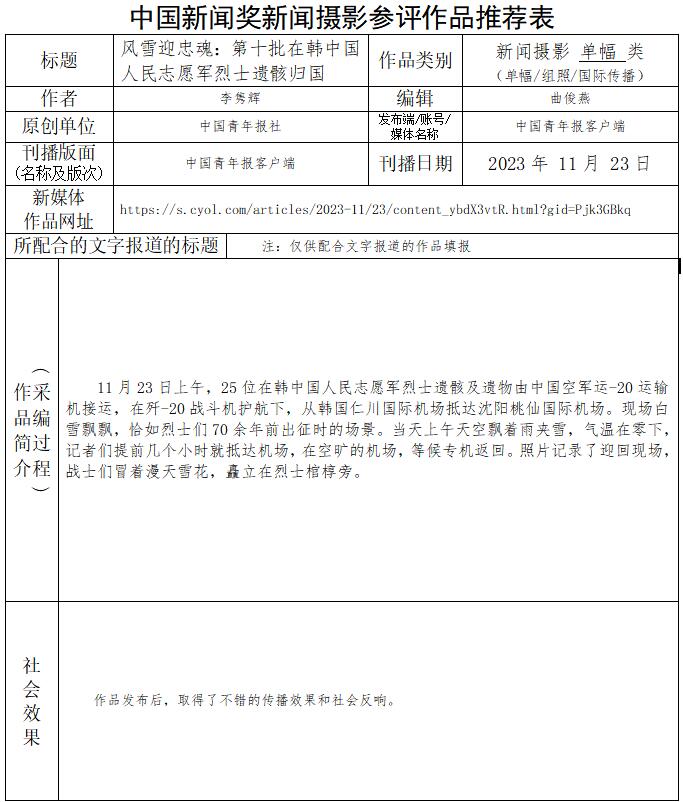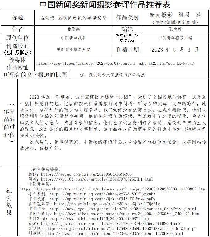 中國(guó)青年報(bào)社推薦參評(píng)第34屆中國(guó)新聞獎(jiǎng)新聞攝影作品專項(xiàng)初評(píng)公示