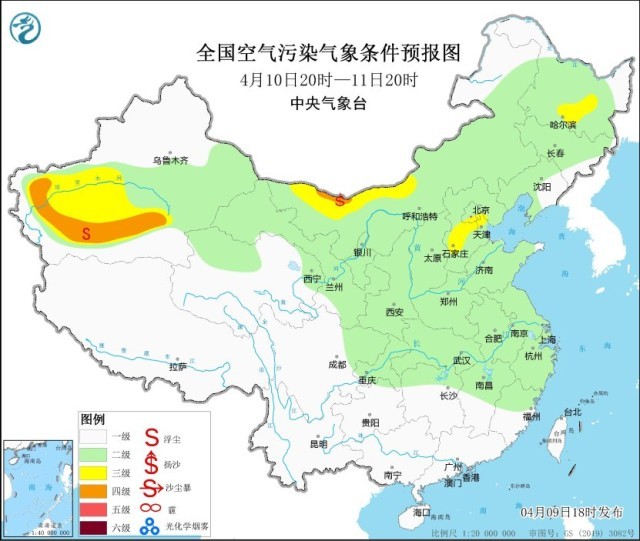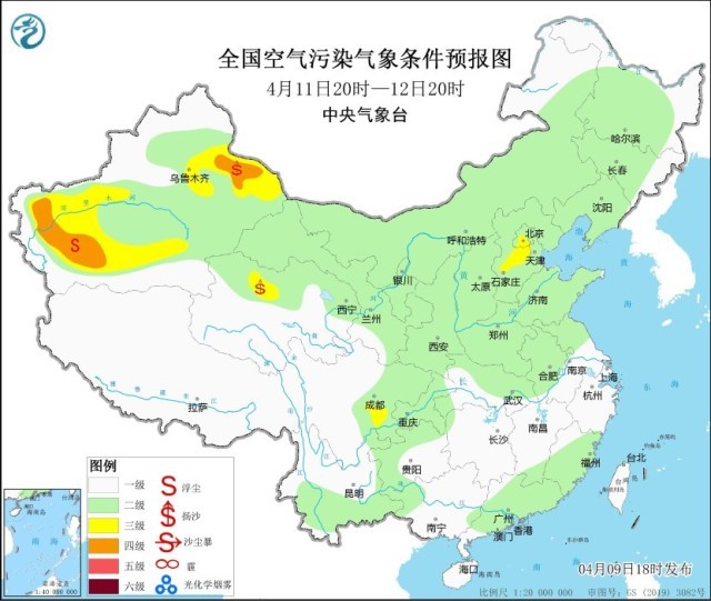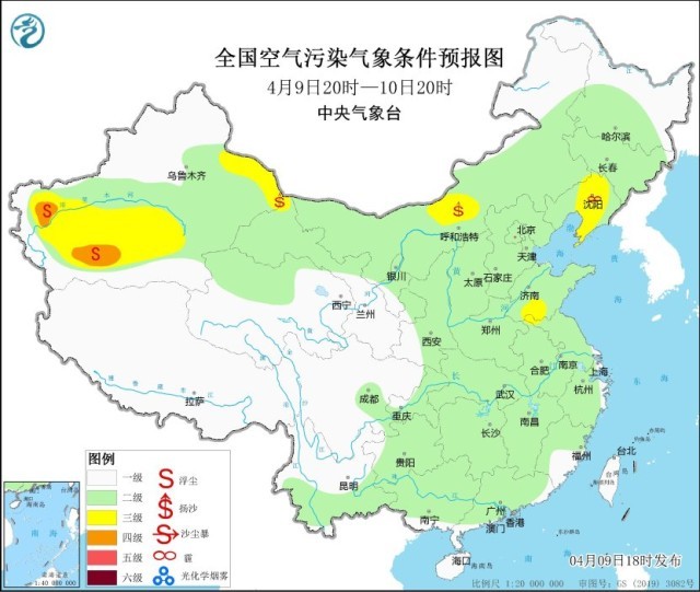 央視網(wǎng)消息:中央氣象臺(tái)網(wǎng)站4月9日18時(shí)發(fā)布環(huán)境氣象公報(bào):
