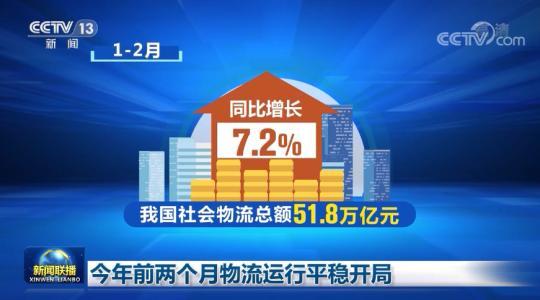央視網(wǎng)消息(新聞聯(lián)播):中國物流與采購聯(lián)合會今天(3月24日)公布的數(shù)據(jù)顯示,今年1—2月,我國物流運行總體平穩(wěn),社會物流總額增長較快。今年1—2月,我國社會物流總額51.8萬億元,同比增長7.2%,物流總額增速延續(xù)回升態(tài)勢,同時明顯高于疫情前2019年水平。從結構看,擴內(nèi)需、促消費政策效應持續(xù)顯現(xiàn),工業(yè)、消費物流需求保持較快增長。1—2月,工業(yè)品物流總額同比增長7.5%,較2020—2021年兩年平均增速加快1.4個百分點。消費品制造業(yè)物流需求同比增長9.7%,較2020—2021年兩年平均增速加快5.2個百分點。另外,進口物流需求持續(xù)回落,但降幅在收窄,物流在促進產(chǎn)業(yè)鏈、供應鏈穩(wěn)定運行中的作用繼續(xù)凸顯。