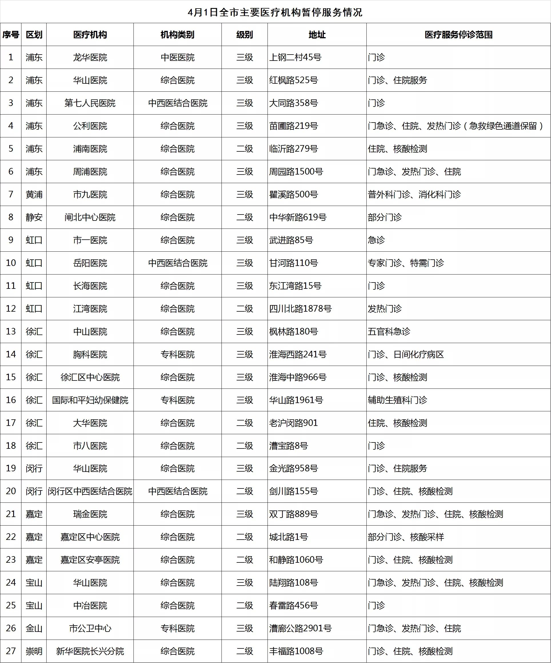 @上海市民 4月1日上海這些醫(yī)療機構(gòu)暫停醫(yī)療服務(wù)