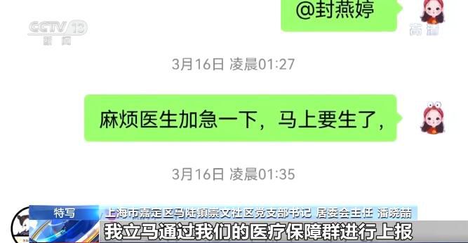 上海市嘉定區(qū)玲瓏坊小區(qū)居民 衛(wèi)丹丹:之前潘主任也跟我講過,她說你不管什么時候,只要發(fā)動了就馬上聯(lián)系我。我這個時候就讓我老公給她撥了個微信語音過去,沒想到她就是也接得很快,說馬上就給我們安排120(救護(hù)車)過來,生的是男孩子,生出來是7斤7兩。