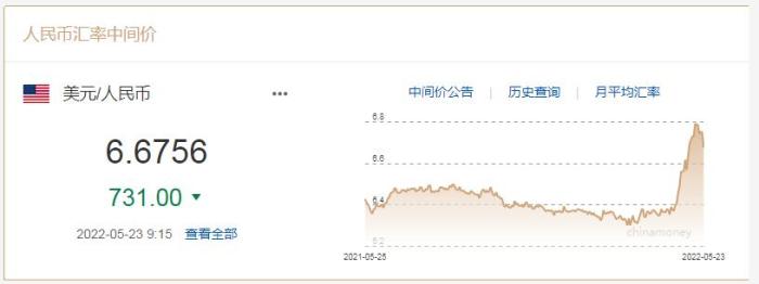 中新財經(jīng)5月23日電(記者 李金磊) 中國人民銀行授權(quán)中國外匯交易中心公布,2022年5月23日銀行間外匯市場人民幣匯率中間價為:1美元對人民幣6.6756元。這較上一交易日大幅調(diào)升731個基點。此外,在岸人民幣、離岸人民幣對美元匯率也已升回6.6元時代。(完)