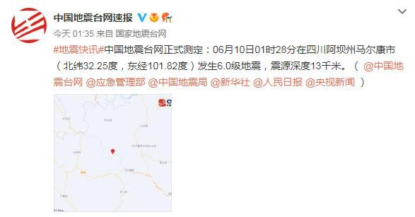 據(jù)國家地震臺網(wǎng)官方微博消息,四川阿壩州今晨發(fā)生多次地震,其中01時(shí)28分發(fā)生6.0級地震,震源深度13千米。另據(jù)央視新聞客戶端消息,國務(wù)院抗震救災(zāi)指揮部辦公室、應(yīng)急管理部已啟動國家地震應(yīng)急四級響應(yīng)。應(yīng)急管理部連夜派出工作組赴四川指導(dǎo)協(xié)助地方開展抗震救災(zāi)工作。四川省緊急啟動地質(zhì)災(zāi)害三級應(yīng)急響應(yīng),目前暫未收到震區(qū)及周邊區(qū)域因次生地質(zhì)災(zāi)害造成人員傷亡的報(bào)告。