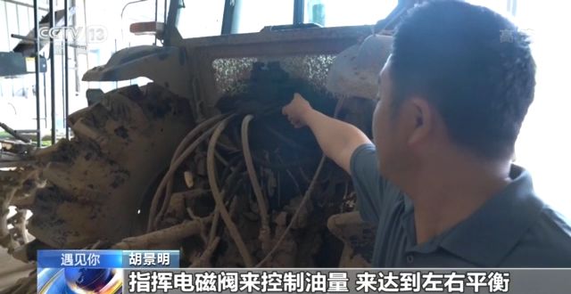 胡景明:如果農(nóng)具有一點傾斜,傳感器會自動發(fā)出信號給控制器,控制器再發(fā)出信號,指揮電磁閥控制油量,來達到左右平衡。