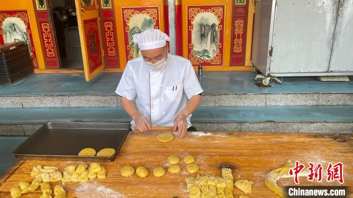 張潤(rùn)明正在制作豆面餅?!铎o 攝