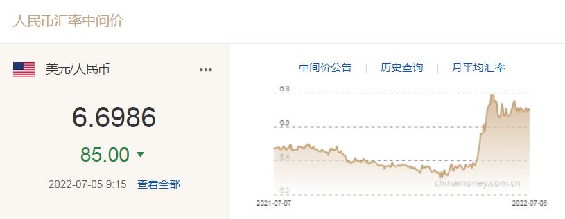 人民幣兌美元中間價(jià)報(bào)6.6986,上調(diào)85個(gè)基點(diǎn)