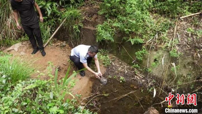 沙縣區(qū)公安分局森林警察大隊(duì)民警與林業(yè)部門人員將穿山甲帶至適合生存的深山放生?!∪骶焦﹫D