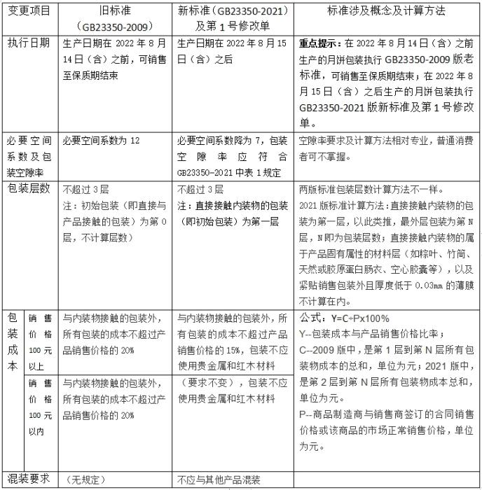 中消協(xié)也呼吁社會各界對照下表中包裝層數(shù)、包裝成本、混裝要求等三項內容,對市場上銷售的月餅產(chǎn)品進行監(jiān)督。同時監(jiān)督要依法客觀公正,不得損害經(jīng)營者的商業(yè)信譽等合法權益。