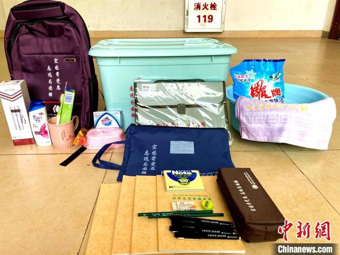 資料圖為京藏宏志班學(xué)生發(fā)放的學(xué)習(xí)、生活用品?!”本┰毓﹫D