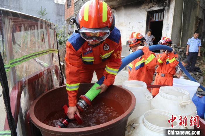 湖北咸寧消防為村民送水(資料圖) 湖北咸寧消防供圖