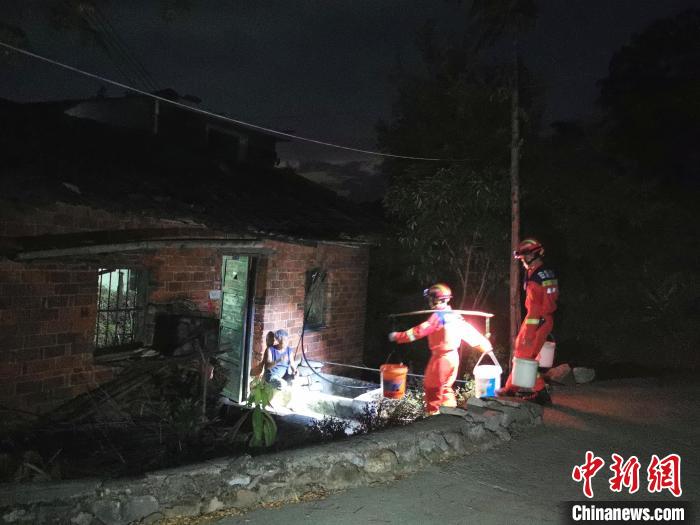 湖北咸寧消防為行動(dòng)不便的村民送水(資料圖) 湖北咸寧消防供圖
