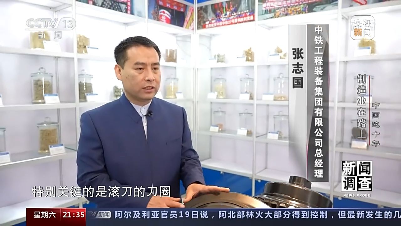 中鐵工程裝備集團(tuán)有限公司總經(jīng)理 張志國:我們在研究這個(gè)刀圈的時(shí)候和清華大學(xué)等大的院校,專業(yè)的院校進(jìn)行合作,經(jīng)過我們實(shí)驗(yàn)以后我們2018年實(shí)現(xiàn)了國產(chǎn)化,目前整個(gè)中國市場上的刀具國產(chǎn)的刀具占到了90%。