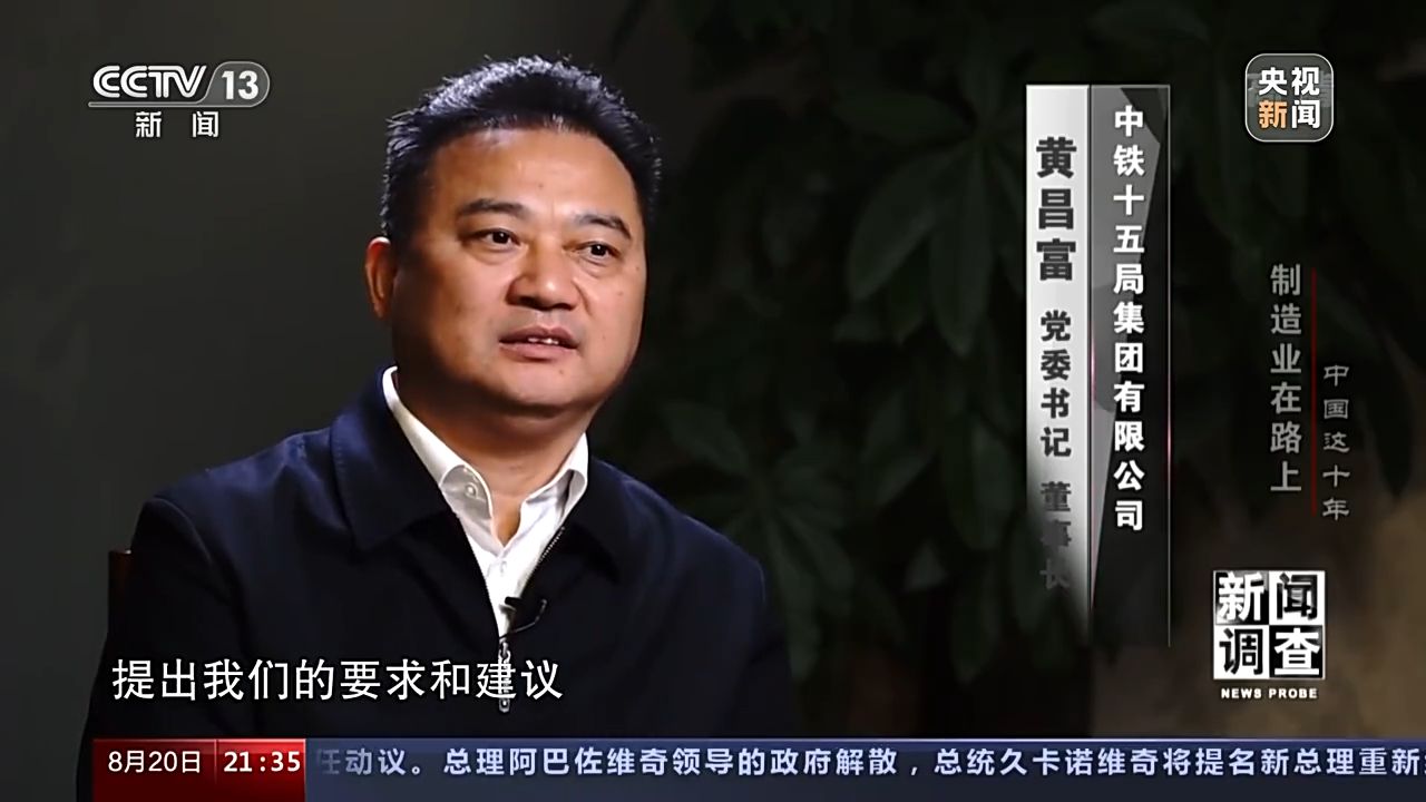 中鐵十五局集團(tuán)有限公司黨委書記 董事長 黃昌富:比如說砂卵石地層,對這個(gè)刀具的磨損是非常厲害的,所以我們就給它這個(gè)刀具的配置要提出我們的要求和建議。