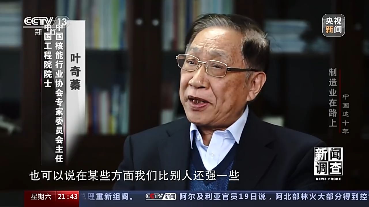 中國工程院院士 中國核能行業(yè)協(xié)會(huì)專家委員會(huì)主任 葉奇蓁:從總的技術(shù)水平可以這樣說,我們已經(jīng)從跟跑進(jìn)入了并跑,也可以說在某些方面我們比別人還強(qiáng)一些。