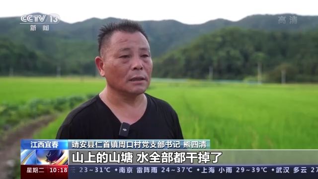靖安縣仁首鎮(zhèn)周口村黨支部書記 熊四清:山上的山塘水全部都干掉了,旱情比較嚴(yán)重的就盡快抽水灌溉,緩解旱情壓力。