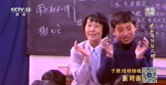 于漪:他說注意這個(gè)詞讀“煢”,大家要看清楚,這個(gè)下面不是一撇,是一豎,筆直,筆直。他在黑板上就寫了一個(gè)大字“煢”,筆直,筆直,記得再窮脊梁骨要硬,他教的是字形字音,給我們?nèi)霾サ氖亲鋈说览?。我們今天講上課要有德育,這不就是德育嗎?