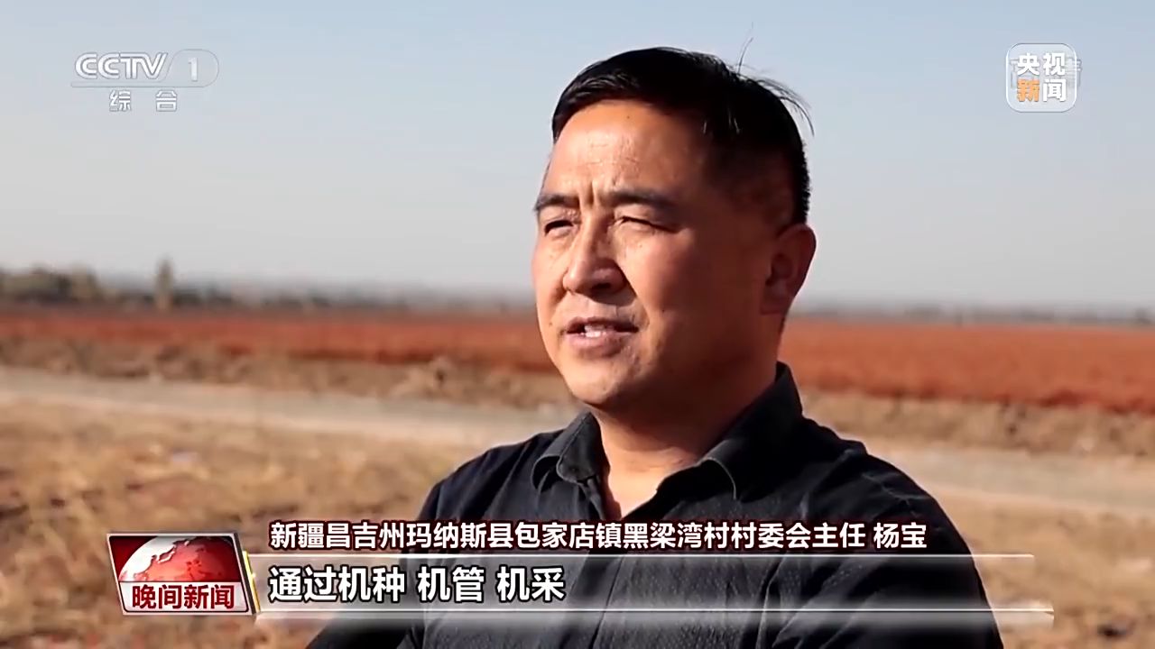 新疆昌吉州瑪納斯縣包家店鎮(zhèn)黑梁灣村村委會(huì)主任 楊寶:通過(guò)機(jī)種、機(jī)管、機(jī)采,目前產(chǎn)量在五百公斤左右,農(nóng)戶除掉開支,每畝地純收入在兩千元左右。(央視新聞客戶端)