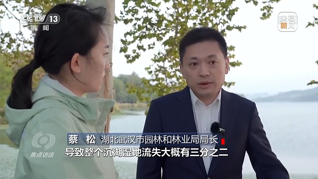 湖北武漢市園林和林業(yè)局局長 蔡松:圍湖造田、養(yǎng)魚,導(dǎo)致整個沉湖濕地流失大概有三分之二,比較嚴(yán)重。從2013年開始,武漢市加大對沉湖濕地的整治力度,通過生態(tài)補(bǔ)償?shù)姆绞?,整個退漁還濕達(dá)到了7.8萬畝。