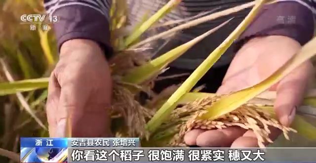 浙江省安吉縣農(nóng)民 張培興:你看這個稻子,很飽滿、緊實,穗又大,稻子千粒重也比往年要重。已經(jīng)到達(dá)我的預(yù)期了,我很開心。