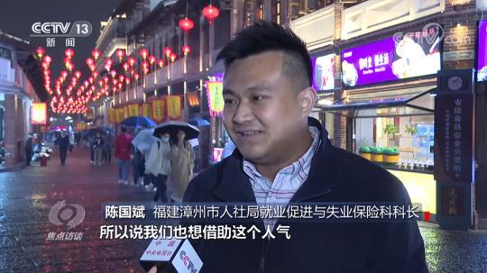 福建漳州市人社局就業(yè)促進與失業(yè)保險科科長陳國斌:“古城北廣場在漳州是比較熱鬧的一個地方,我們也想借助這個人氣來帶動就業(yè)工作,為大家提供一個輕松、平緩、舒適的平臺。我們做了一個調(diào)研,反饋出來的企業(yè)用工數(shù)總體跟往年相比增加5%到10%。”