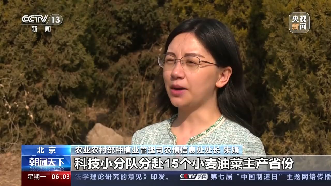 農(nóng)業(yè)農(nóng)村部種植業(yè)管理司農(nóng)情信息處處長(zhǎng) 朱娟:科技小分隊(duì)分赴15個(gè)小麥油菜主產(chǎn)省份,包片蹲點(diǎn),指導(dǎo)落實(shí)以“控旺促弱、抗旱防凍、防病治蟲”為重點(diǎn)的春季田管關(guān)鍵措施,全力以赴打贏夏糧豐收第一仗。(央視新聞客戶端)