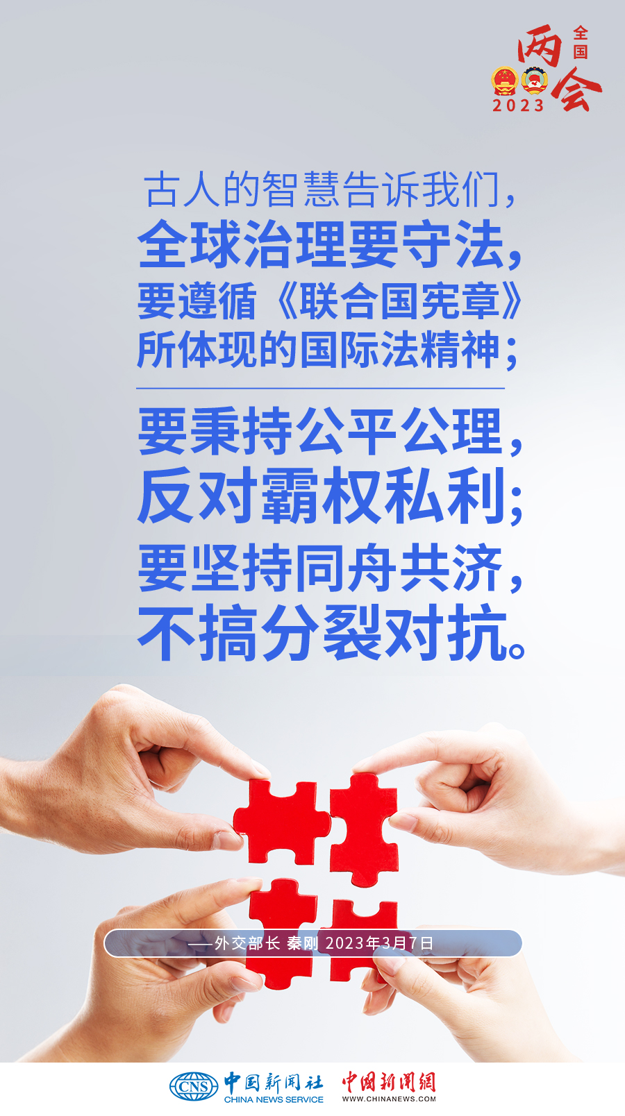 秦剛:古人的智慧告訴我們,全球治理要守法,要遵循《聯(lián)合國憲章》所體現(xiàn)的國際法精神;要秉持公平公理,反對霸權(quán)私利;要堅持同舟共濟,不搞分裂對抗。