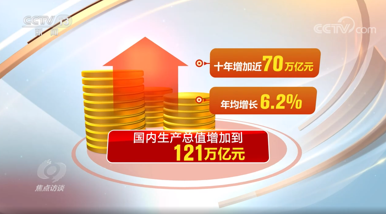 這五年,我國經(jīng)濟(jì)發(fā)展再上新臺階。國內(nèi)生產(chǎn)總值增加到121萬億元,五年年均增長5.2%,十年增加近70萬億元、年均增長6.2%,在高基數(shù)基礎(chǔ)上實現(xiàn)了中高速增長、邁向高質(zhì)量發(fā)展。