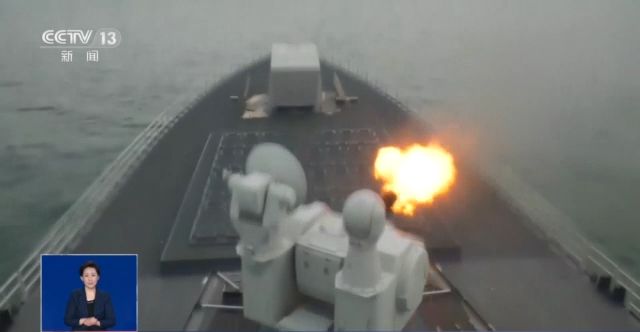 剛剛到達預定海域,無錫艦雷達就發(fā)現(xiàn)海上目標,官兵立即進入戰(zhàn)斗狀態(tài)。鎖定目標后,無錫艦主炮連續(xù)開火成功摧毀海上目標。此時,雷達發(fā)現(xiàn)空中目標來襲。雷達鎖定目標后,副炮迅速對空中目標進行打擊。同時,無錫艦連續(xù)發(fā)射多枚干擾彈,并快速機動規(guī)避。