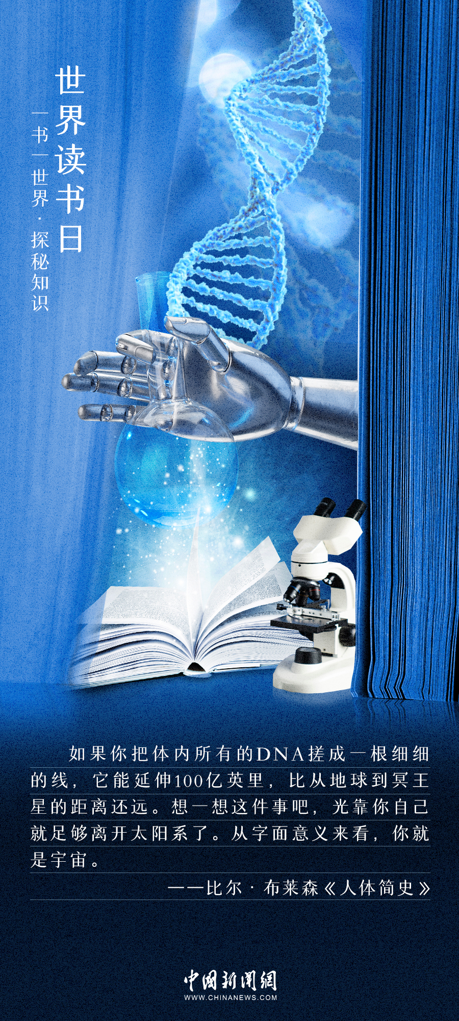 光怪陸離的科幻未來,快意恩仇的武俠江湖,氣勢恢宏的史詩典故......書帶你穿梭古今,造訪未來,領(lǐng)略萬千世界。一書一世界,萬字化乾坤。4月23日,世界讀書日,一起體會文字帶來的無限遐想↓↓↓