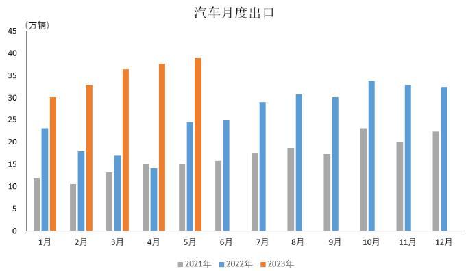 2023年5月,汽車企業(yè)出口38.9萬輛,環(huán)比增長3.4%,同比增長58.7%。