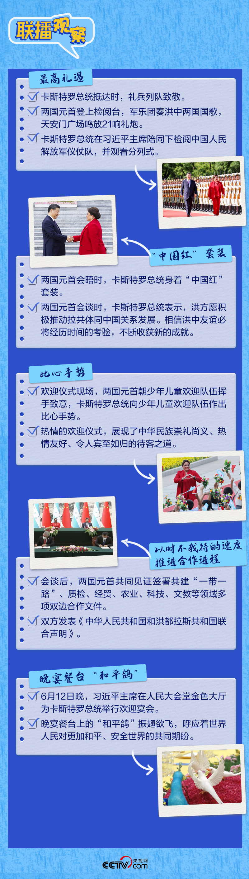 6月12日下午,習(xí)近平主席在人民大會(huì)堂同來(lái)華進(jìn)行國(guó)事訪問(wèn)的洪都拉斯總統(tǒng)卡斯特羅舉行會(huì)談。