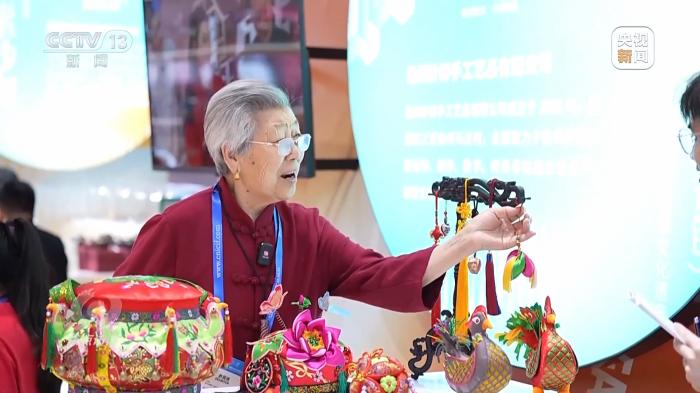 在江蘇展區(qū),一位正在做針線活的白發(fā)老人引人注目,她是江蘇省級非遺項目傳承人王秀英。王奶奶做的徐州香包名字叫做針棒,有著豐厚的文化蘊涵和文化價值,入選第一批國家級非物質(zhì)文化遺產(chǎn)擴展項目名錄。這次和王奶奶一同來參展的還有她的孫女孫歌堯。在學(xué)習(xí)傳統(tǒng)工藝的同時,孫歌堯大膽創(chuàng)新,嘗試融入更多技法和材質(zhì)。