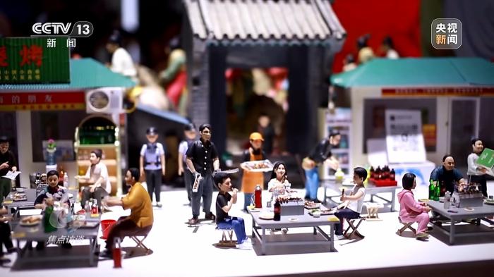 要說本次文博會最吸引人的展位,淄博燒烤算一個??墒?,燒烤怎么進了文博會?原來,這是一個2.8米長的軟陶泥塑微縮景觀,生動還原了淄博燒烤的現(xiàn)實場景。此外,展臺上的琉璃燒烤大餐也吸引了不少人拍照打卡。當(dāng)然,現(xiàn)場還是有可以吃的美食——大名鼎鼎的山東煎餅。