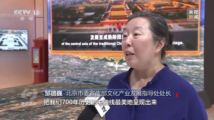 北京市委宣傳部文化產(chǎn)業(yè)發(fā)展指導(dǎo)處處長鄒璐巍:運用了衛(wèi)星遙感、裸眼3D相關(guān)技術(shù),把我們700年歷史的中軸線最美地呈現(xiàn)出來。