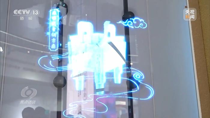 在AI繪畫一旁,國家級保護文物司母戊大方鼎、青銅縱目面具、四羊方尊、越王勾踐劍、曾侯乙編鐘等正以數(shù)字化形式呈現(xiàn)在觀眾面前。參展商通過數(shù)字孿生技術(shù)復(fù)現(xiàn)或重構(gòu)文物和文化遺產(chǎn)的數(shù)字鏡像,從而實現(xiàn)文物和文化遺產(chǎn)的保護、修復(fù)直至永久性保存和活態(tài)化傳承。觀眾既可以看到部分真實的復(fù)制文物和文化遺產(chǎn),又可以體驗虛擬的數(shù)字文物和文化遺產(chǎn),虛實之間,體會數(shù)字化給傳統(tǒng)文物和文化遺產(chǎn)帶來的生命力。