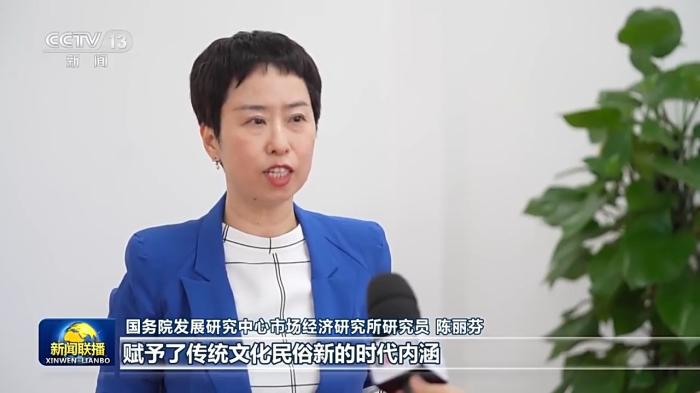 國(guó)務(wù)院發(fā)展研究中心市場(chǎng)經(jīng)濟(jì)研究所研究員陳麗芬:體驗(yàn)式、互動(dòng)式、沉浸式的消費(fèi)場(chǎng)景,賦予了傳統(tǒng)文化民俗新的時(shí)代內(nèi)涵,還有力激發(fā)了文體旅消費(fèi)潛力。(央視新聞客戶端)