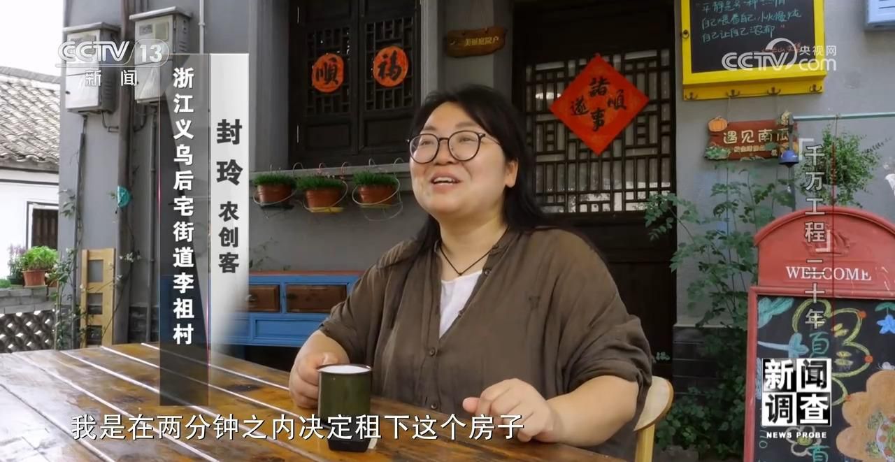 浙江義烏后宅街道李祖村農(nóng)創(chuàng)客 封玲:我是在兩分鐘之內(nèi)決定租下這個(gè)房子。當(dāng)時(shí)是沒(méi)有看到里面長(zhǎng)什么樣子,然后我就在那個(gè)下面看到這個(gè)樓梯,看到這種老房子,然后看到門口的梔子花樹(shù),我就說(shuō)就它了。