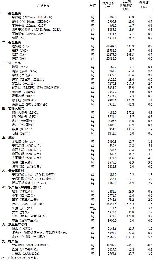 2023年6月下旬流通領(lǐng)域重要生產(chǎn)資料市場價(jià)格變動(dòng)情況