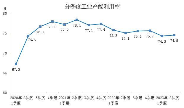 國家統(tǒng)計(jì)局:2023年二季度全國工業(yè)產(chǎn)能利用率為74.5%
