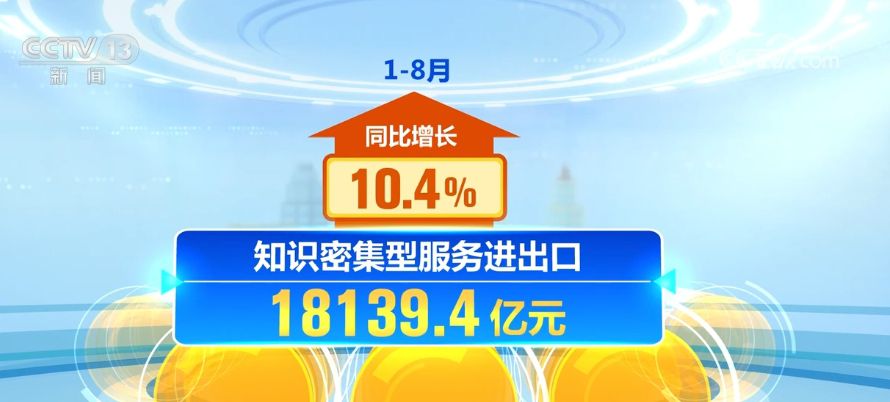 知識密集型服務(wù)貿(mào)易占比提升。1—8月,知識密集型服務(wù)進出口18139.4億元,同比增長10.4%,占服務(wù)進出口總額的比重達(dá)42.6%,較上年同期提升0.9個百分點。知識密集型服務(wù)出口10513.6億元,增長13.1%,知識密集型服務(wù)進口7625.8億元,增長6.9%。