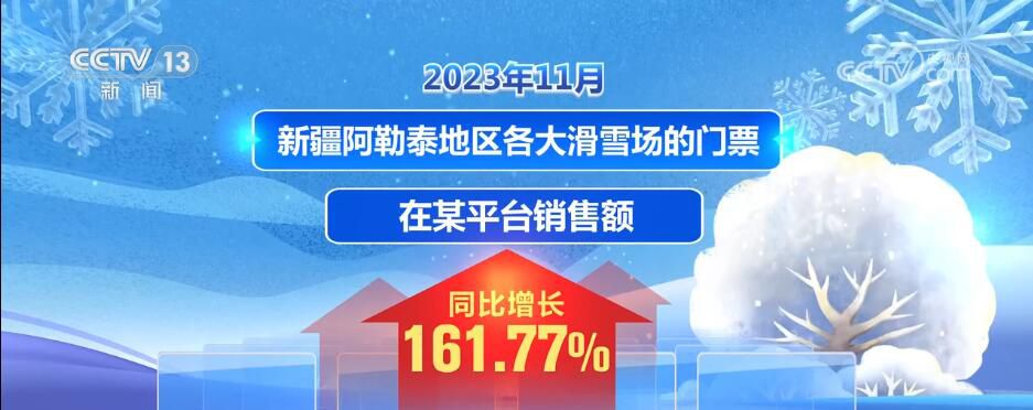 2023年11月,新疆阿勒泰地區(qū)各大滑雪場(chǎng)的門(mén)票在某平臺(tái)的銷(xiāo)售額同比增長(zhǎng)了161.77%。