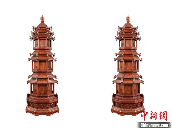 此次國家博物館收藏的5套家具中,2套仿清宮御制的七重檐寶塔分別為越南黃花梨和小葉紫檀材質,3套黃花梨微縮家具器型涵蓋案、柜、坐具、臥具等品種,融技術與藝術、實用與觀賞為一體。